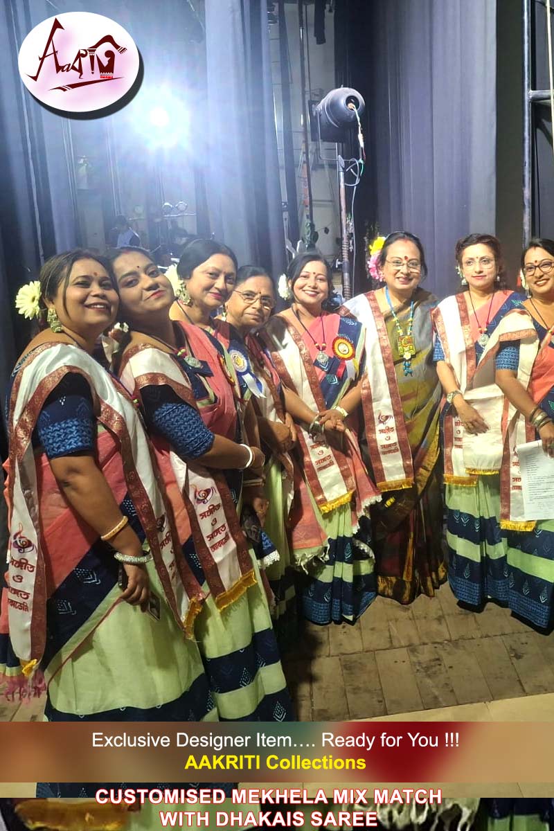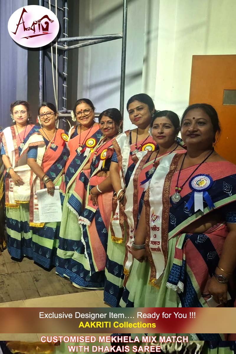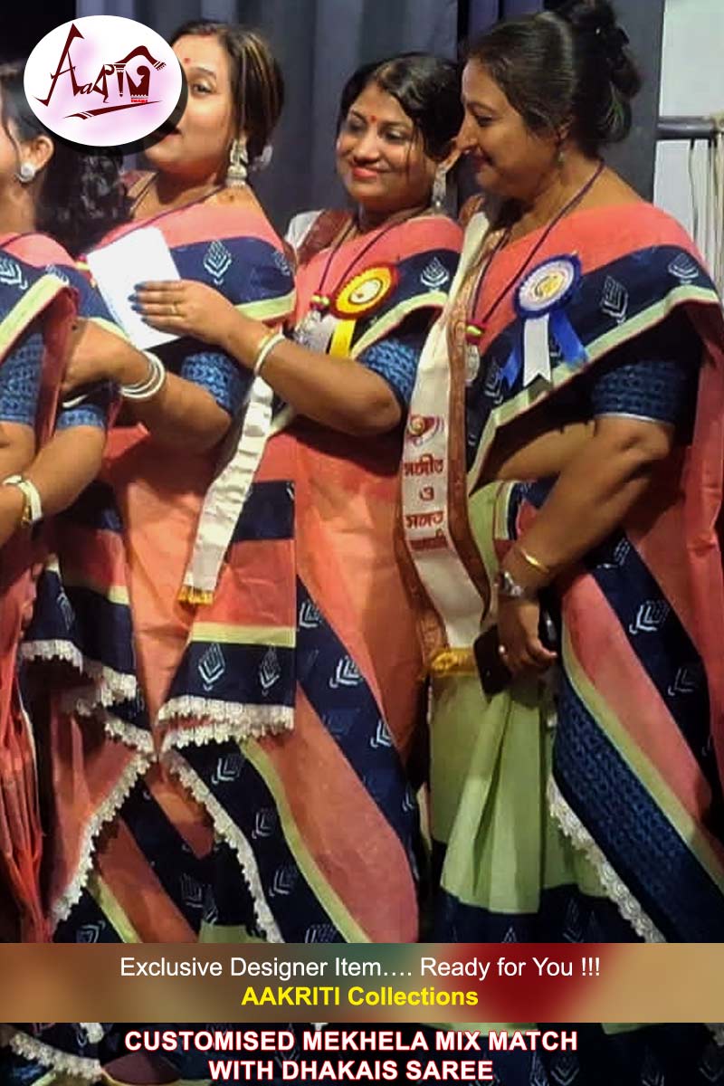Customised Mekhela mix match with Cotton Saree, with Applique Work on Pink and Olive Green cotton saree with BP