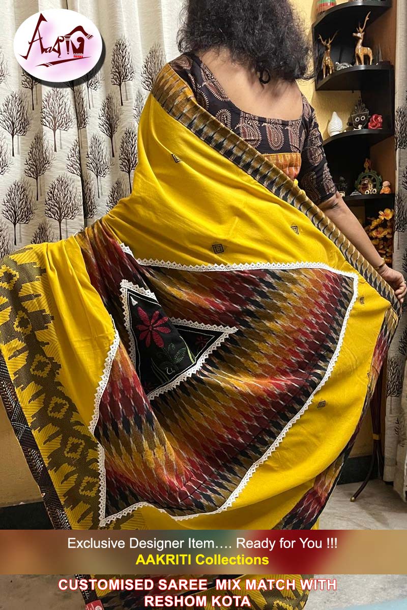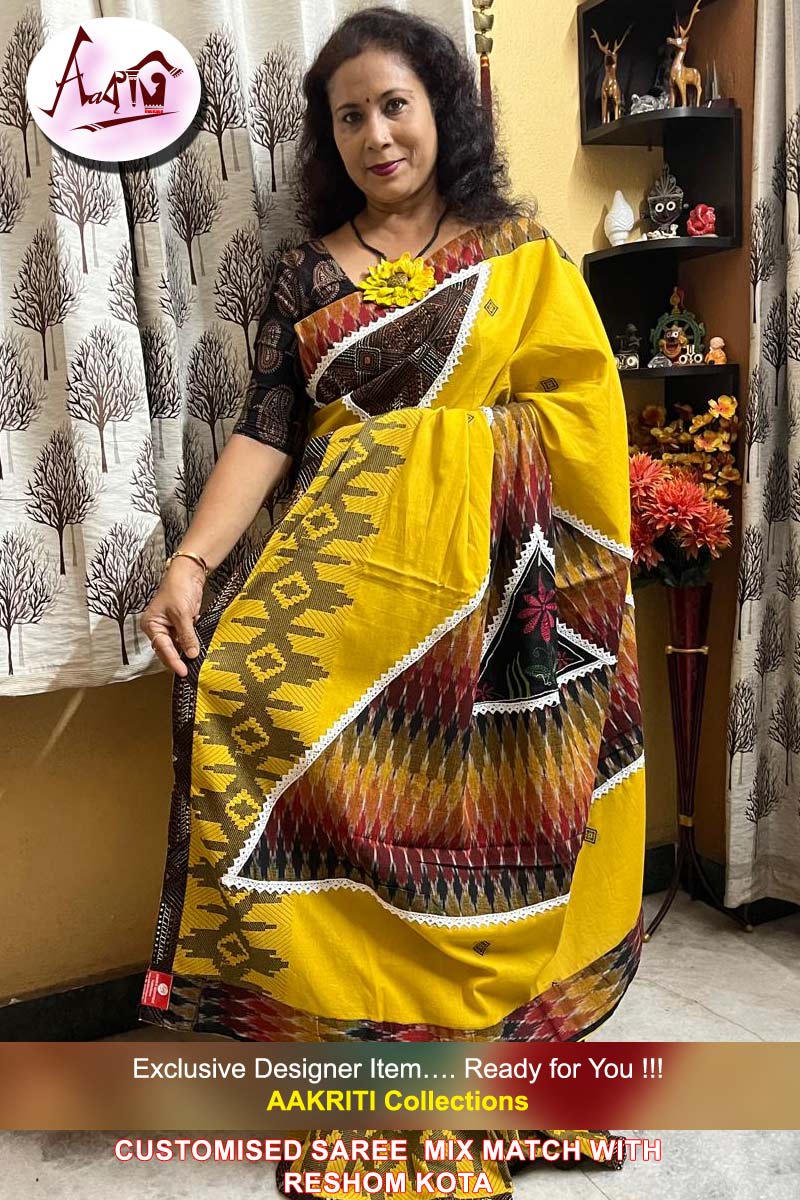 Customised Saree Applique Work On Cotton Jamdani Saree with white lace border, with BP