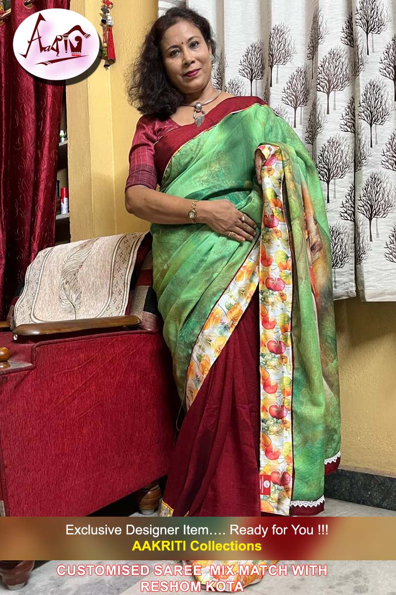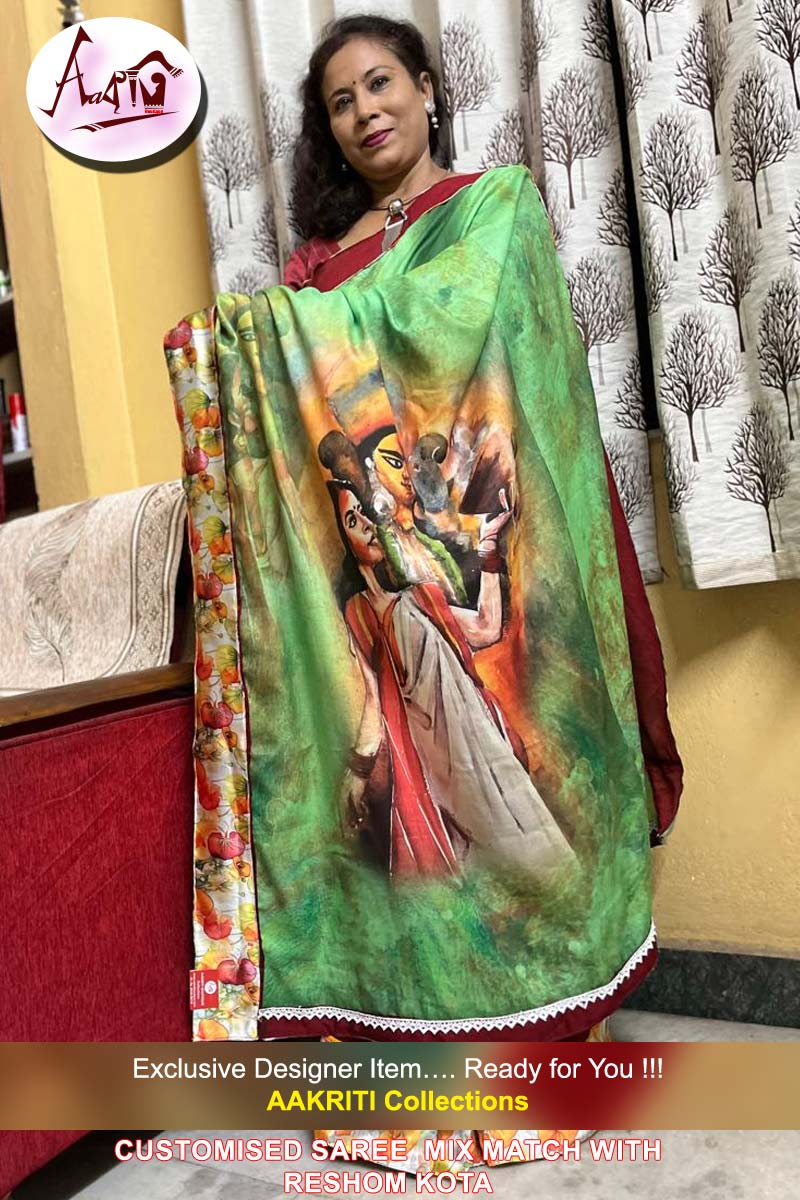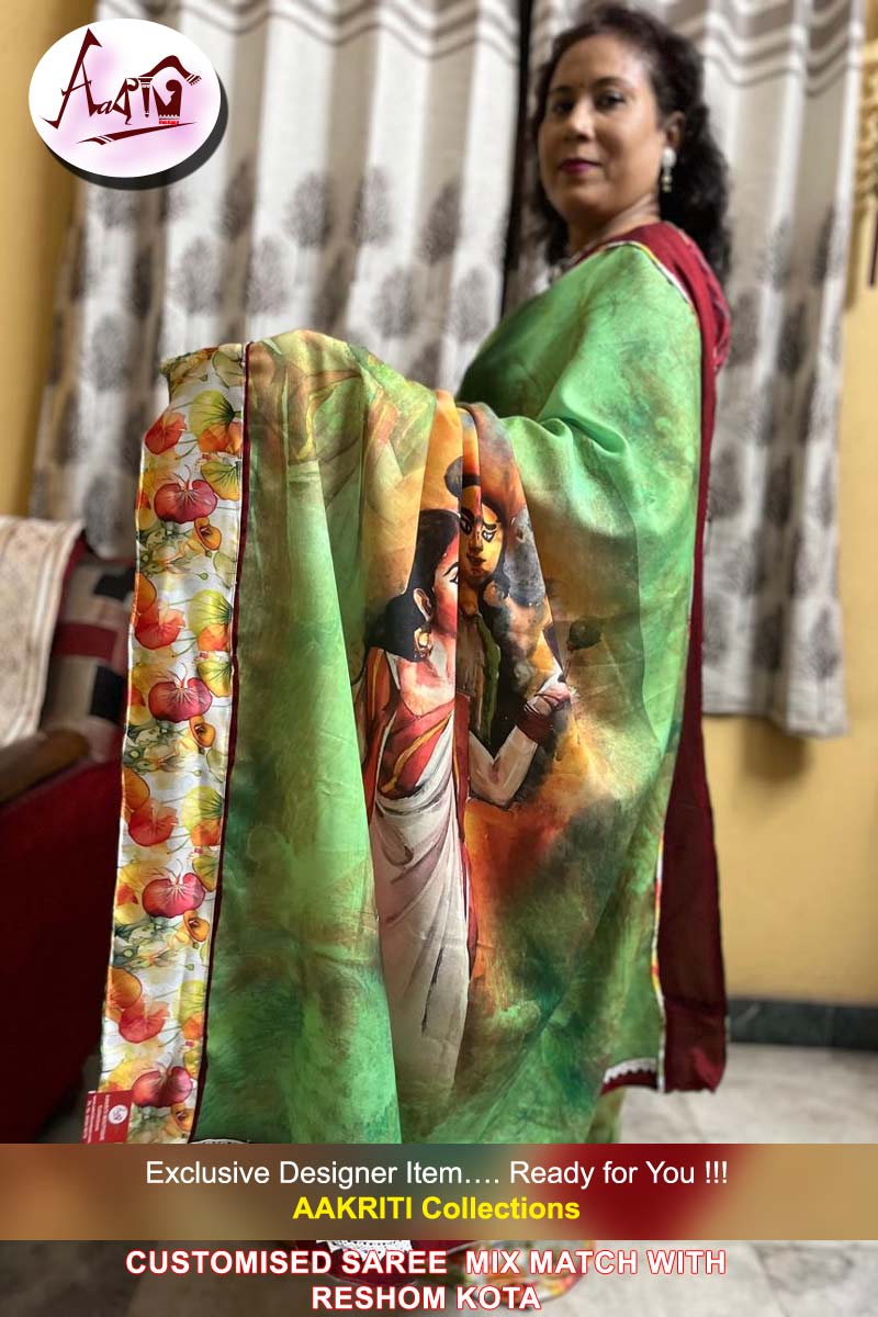 Customised Saree with Digital Print Work On fancy saree, with BP