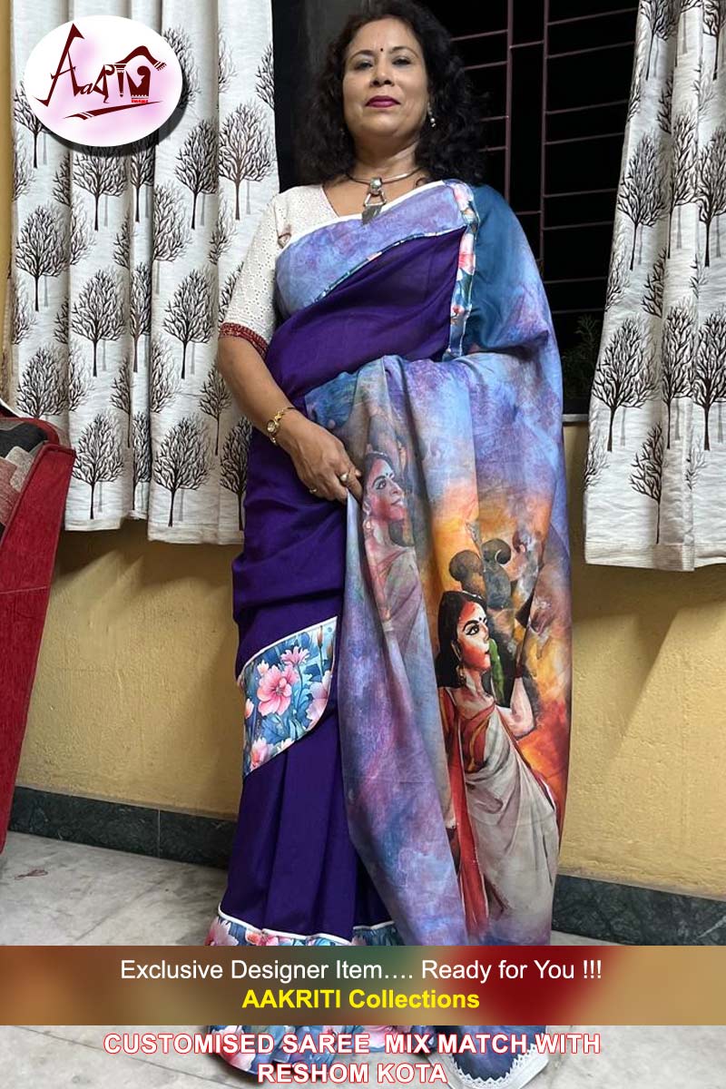 Customised Saree with Digital Print Work On fancy saree, with BP